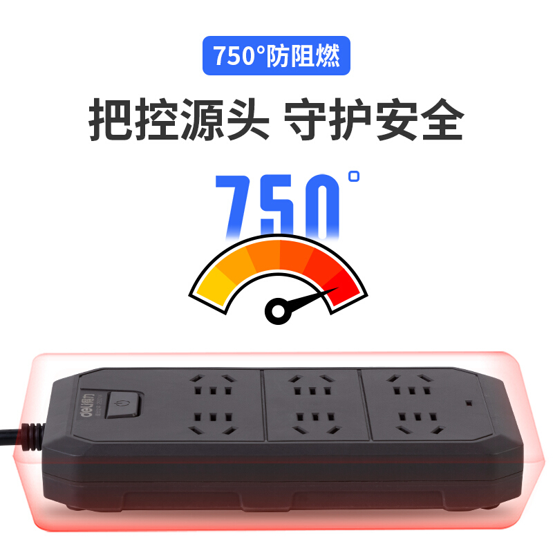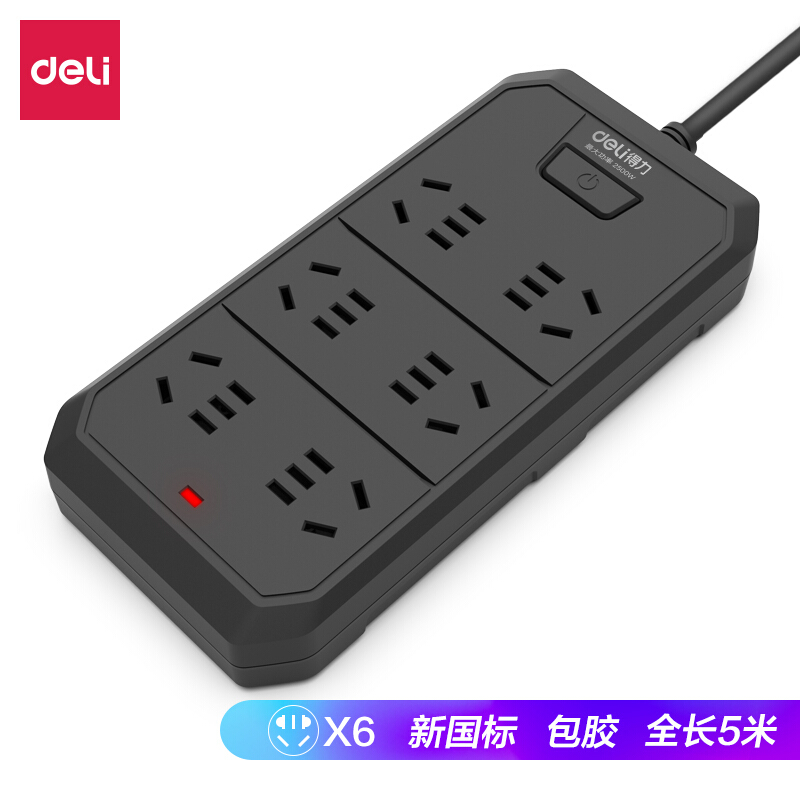 得力(deli)包胶插座/插排/插线板/接线板/排插/拖线板 新国标 6位5米 总控开关 18335-05