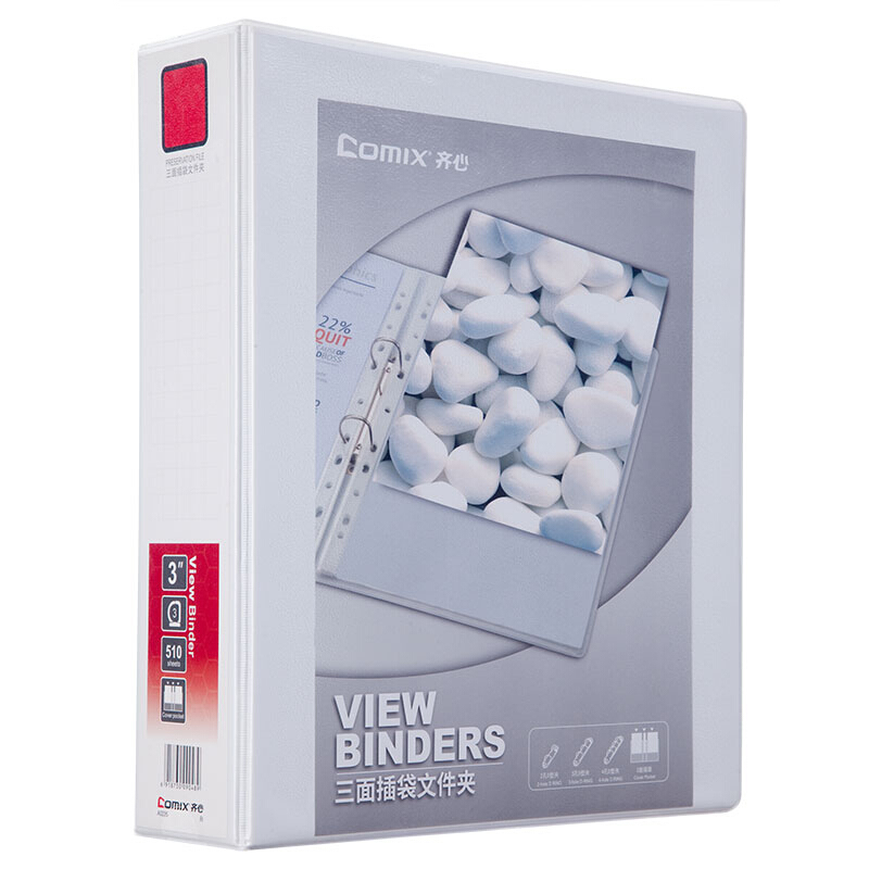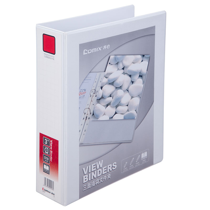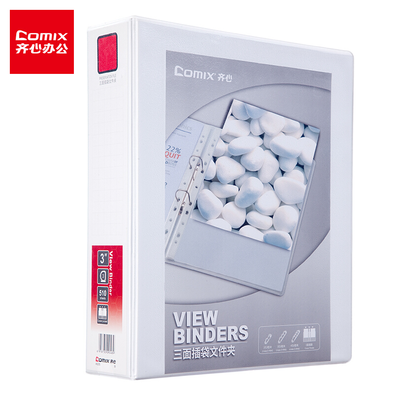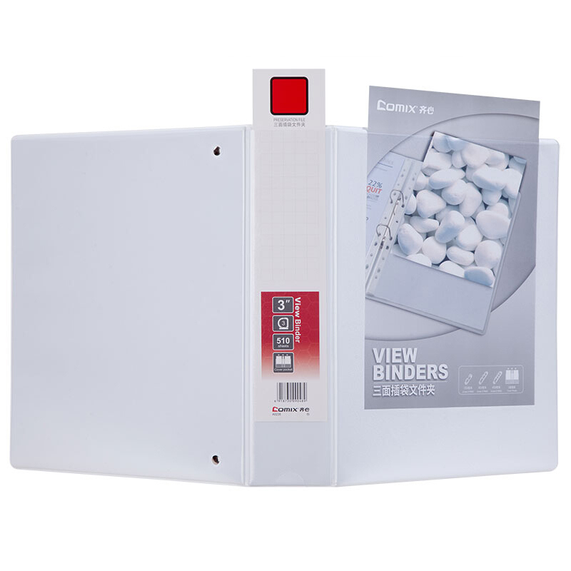 齐心(Comix)A4文件夹 易展示美式三面插袋资料册 3英寸3孔 办公用品 白 A0235