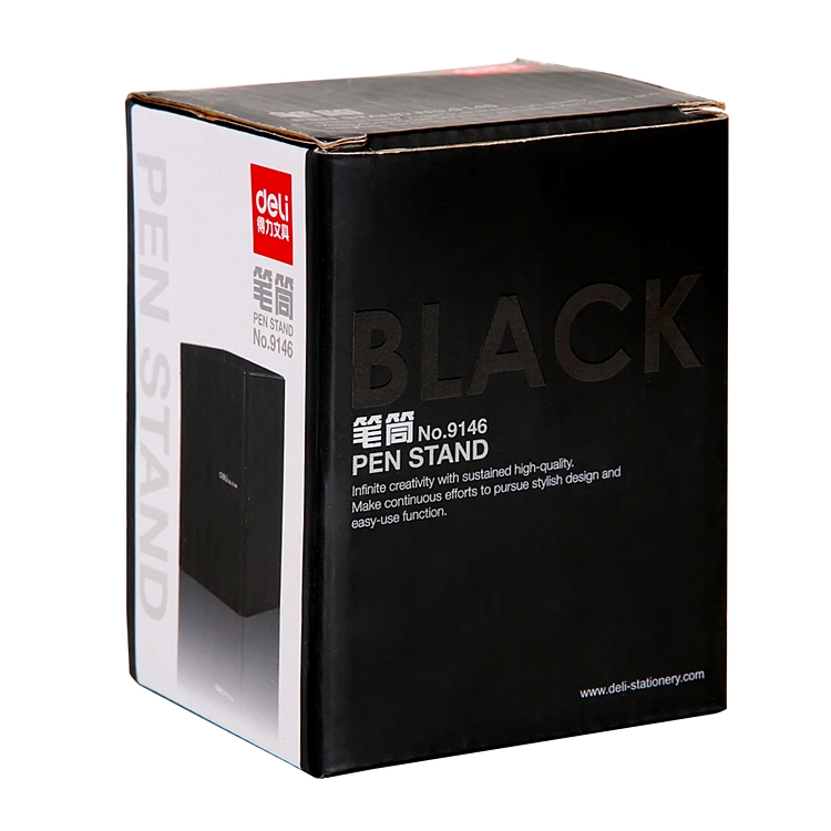 • 得力(deli)金属钢制桌面笔筒 商务办公收纳盒 黑色9146