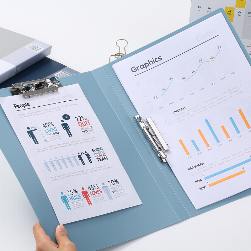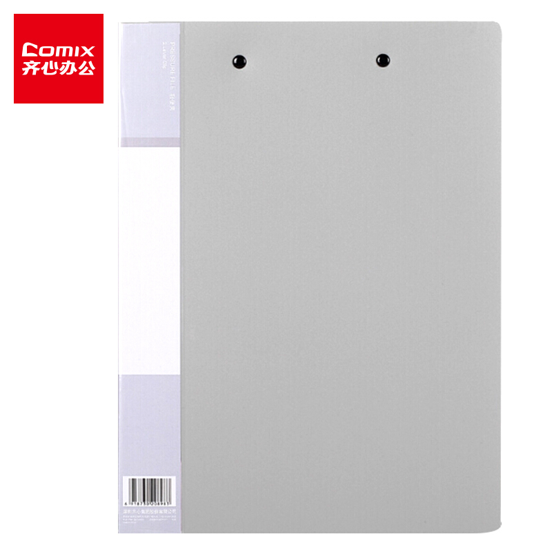 齐心(Comix)A4金属双强力夹硬文件夹 大容量试卷资料夹诗朗诵签约夹板 文件收纳办公用品 EA3006 浅灰