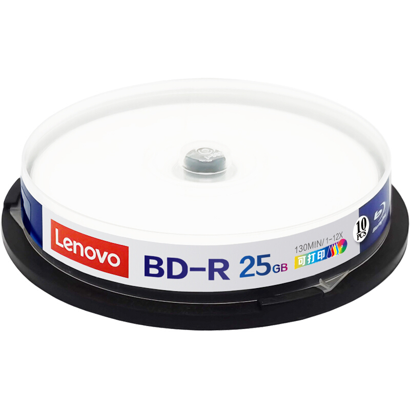 • 联想BD-R 蓝光可打印刻录盘 6-12速25GB 桶装10片