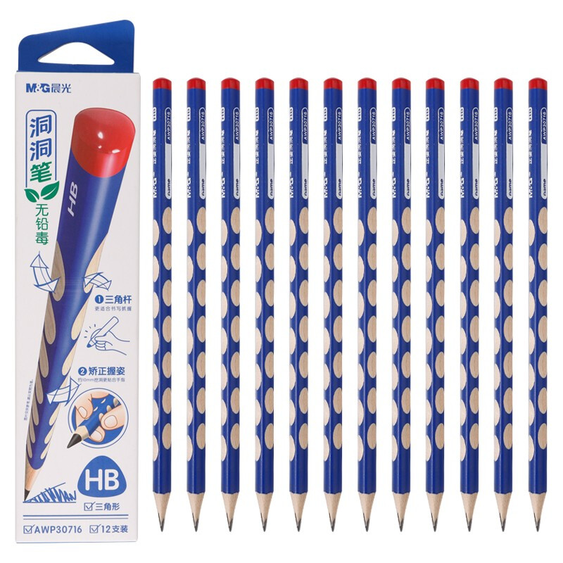 • 晨光AWP30716 文具HB洞洞铅笔 三角木杆铅笔 学生正姿沾顶木质铅笔 12支/盒