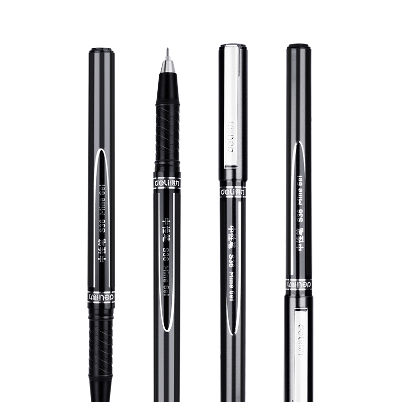 • 得力S36 中性笔0.5mm签字笔商务碳素笔黑色水笔 12支