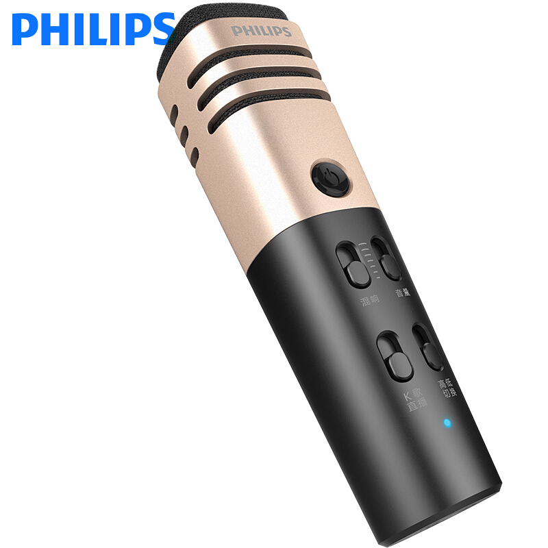 飞利浦(PHILIPS) K38001手机麦克风 主播直播全民K歌专用话筒 苹果安卓电容麦 电脑家庭音响唱歌 香槟金
