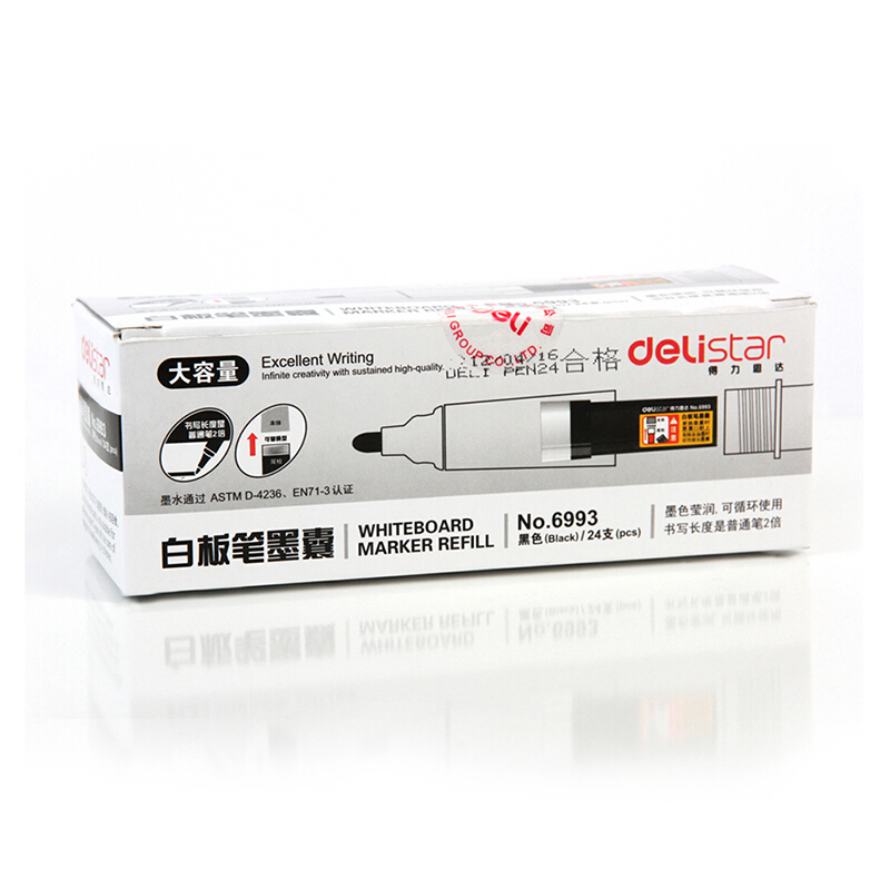 • 得力黑色白板笔替芯6993 24支/盒 适配得力6820 白板笔