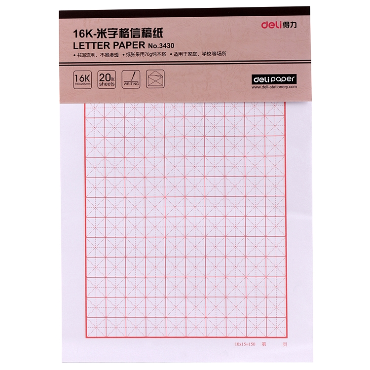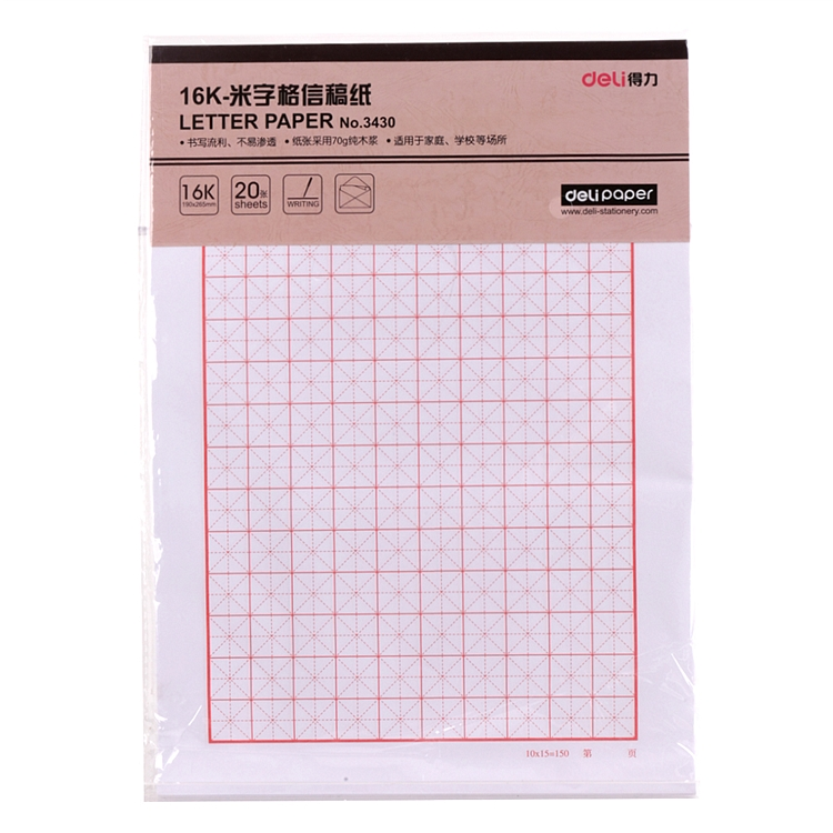 得力 3430 米字格信纸稿纸 16k/20页 (单位:3本) 白