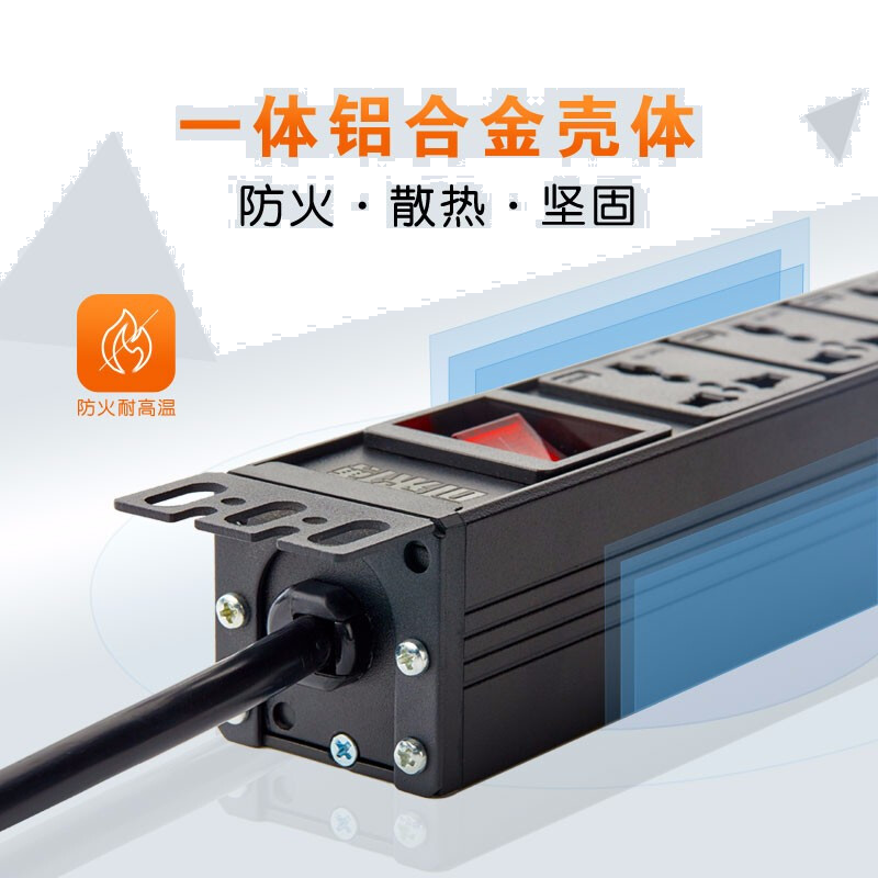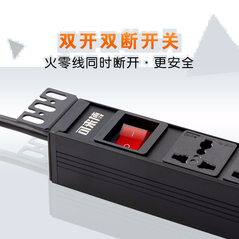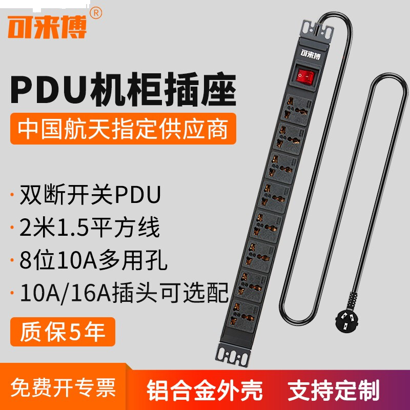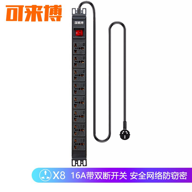 • 可来博pdu机柜插座 工程插排/排插/接线板/插线板 支持定制 8位10A多用孔 1.5平方线 10A插头