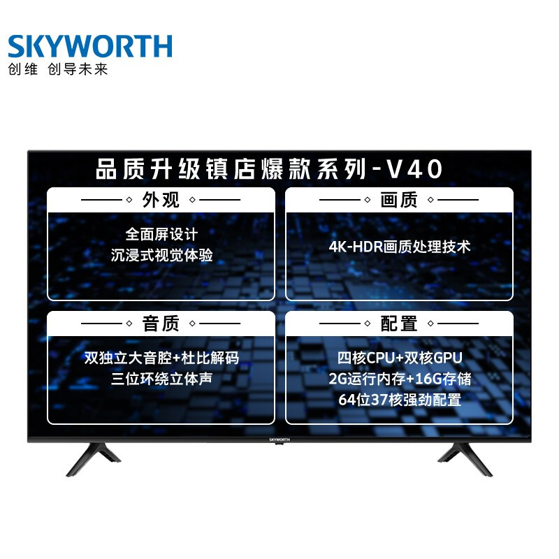 创维(SKYWORTH)50V40 50英寸 4K超高清 超薄全面屏 教育电视 2+16G内存 支持投屏 V20升级版 智慧电视