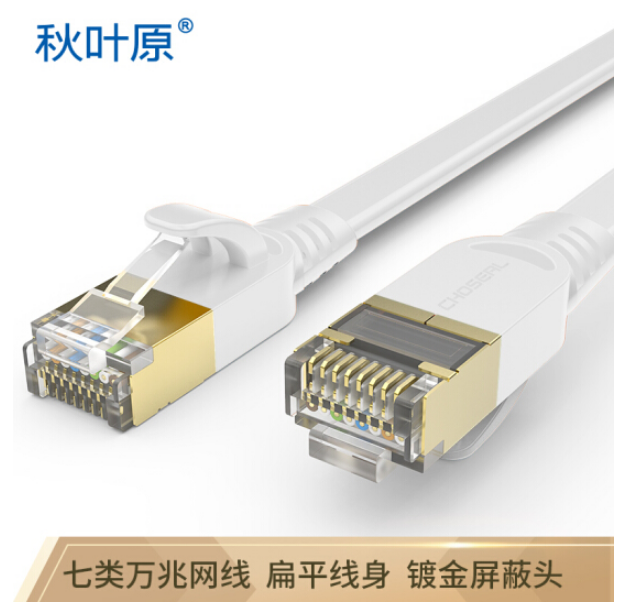 秋叶原(CHOSEAL)七类扁平网线带镀金水晶头电脑路由器连接线网络跳线成品网线2米 黑色QS5178A