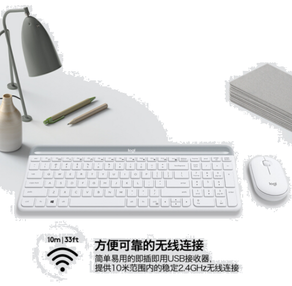 罗技(Logitech)MK470 键鼠套装 无线键鼠套装 超薄 全尺寸 芍药白 带无线2.4G接收器
