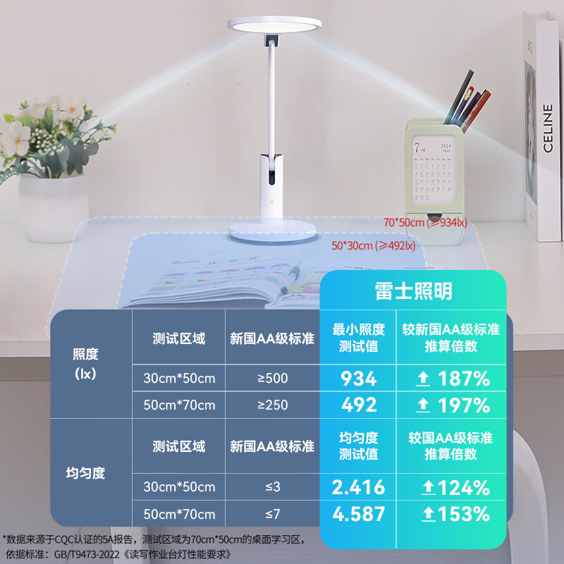 • 雷士(NVC)护眼台灯儿童学习灯智能感光阅读家用学生宿舍书桌全光谱感应灯C3