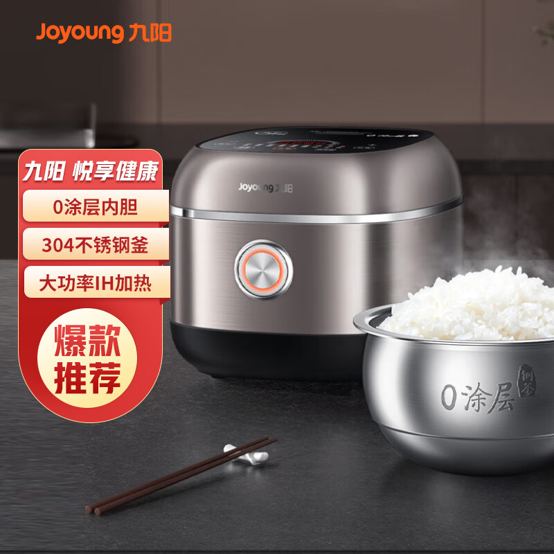 九阳(Joyoung)ZMD安心系列 4L大容量3-8人 0涂层防脱落304不锈钢内胆1200W火力IH电磁加热电饭煲40N10