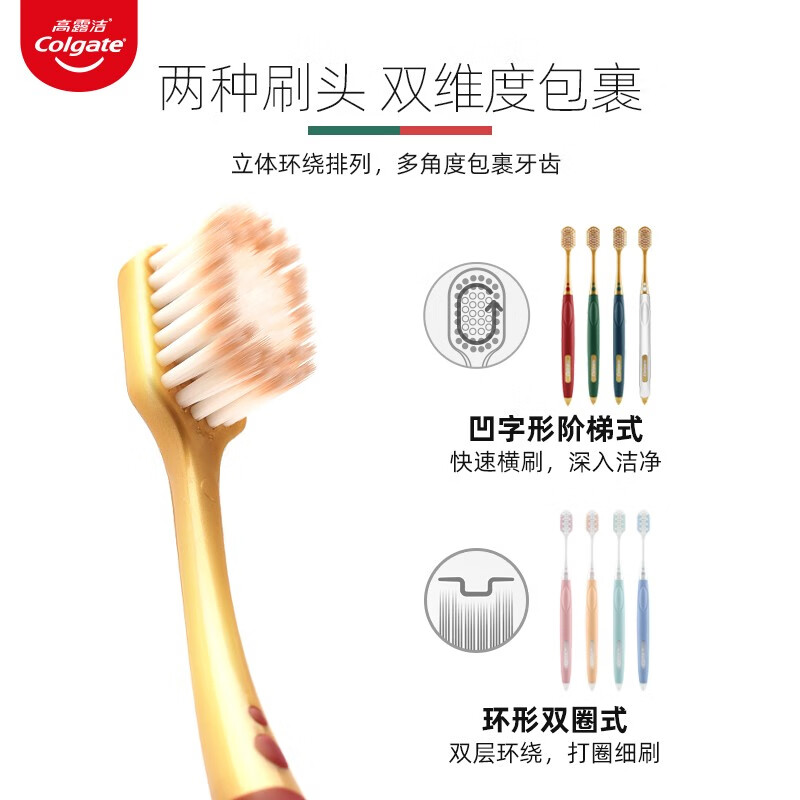 • 高露洁(Colgate)48孔宽头护龈超细软毛牙刷*2绵绵丝清洁成人牙刷