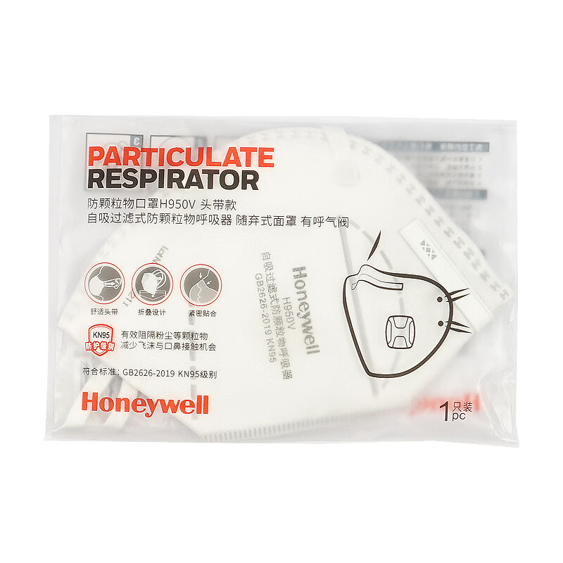 • 霍尼韦尔(Honeywell)KN95防尘口罩 H950V 防飞沫打磨工业粉尘雾霾 带阀头戴式 25只