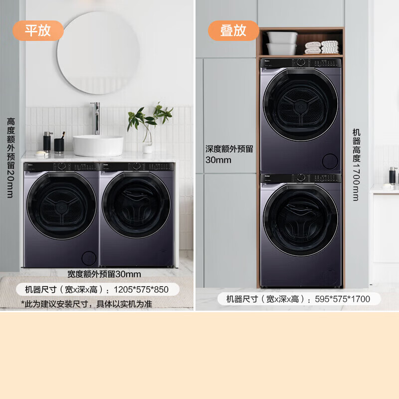 • 海尔(Haier)XQG100-BLDE557B+GA100-S557B洗烘套装 10kg全自动滚筒洗衣机+双擎热泵烘干机 直驱精华洗