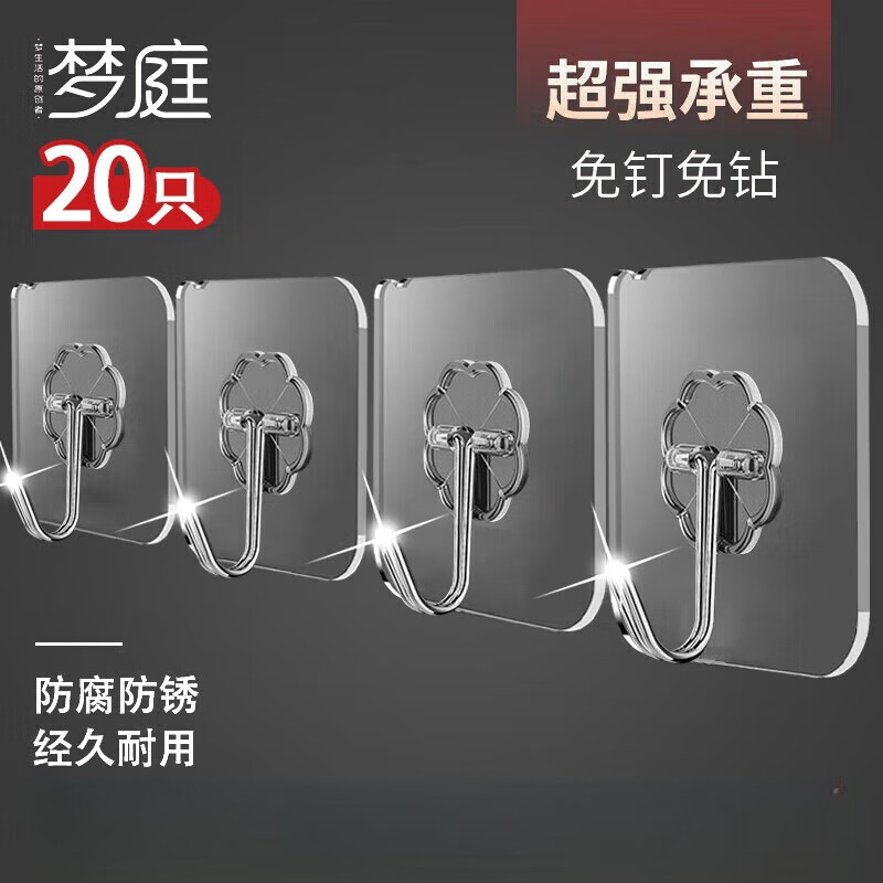 • 梦庭 挂钩 强力粘钩卫生间免打孔挂钩贴浴室门后贴墙挂衣钩 20只