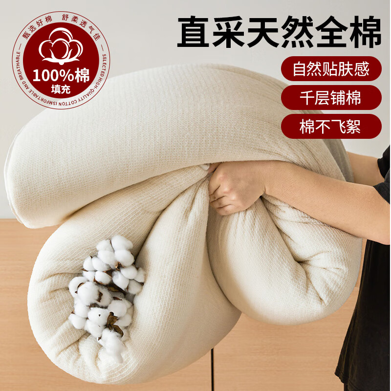 • 无印良品100%新疆棉花被子棉絮盖被垫被褥子秋冬季加厚棉胎被芯6斤150x200