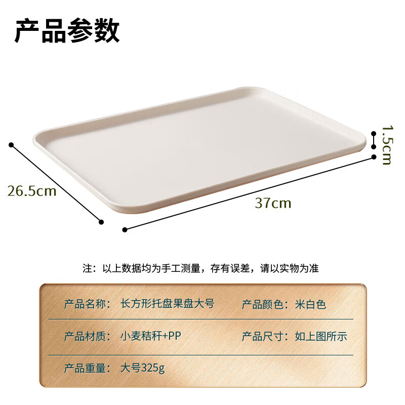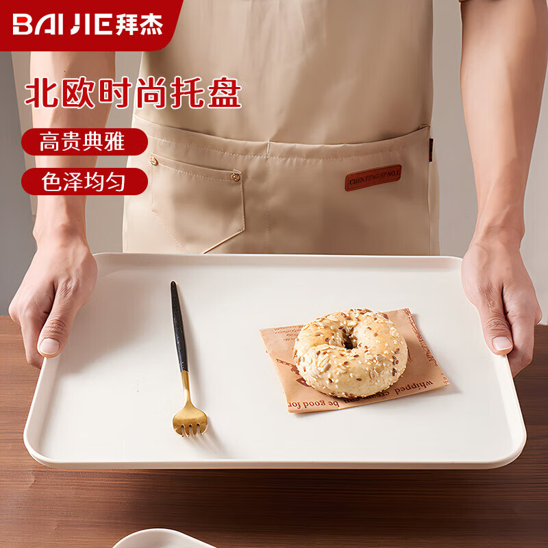 • 拜杰长方形水果托盘茶盘大号米白色37*26.5*1.5
