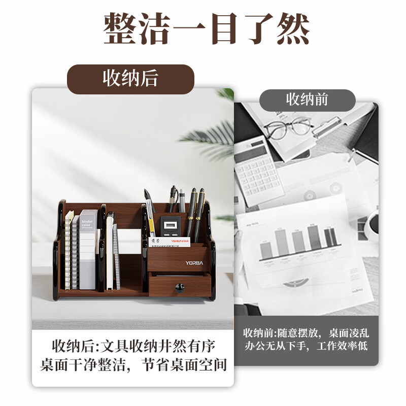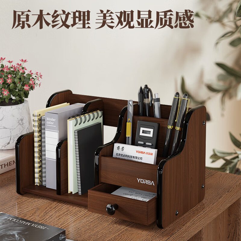 • 优必利 木质笔筒桌面收纳盒 组合办公桌整理架 桌面抽屉收纳座 6021A