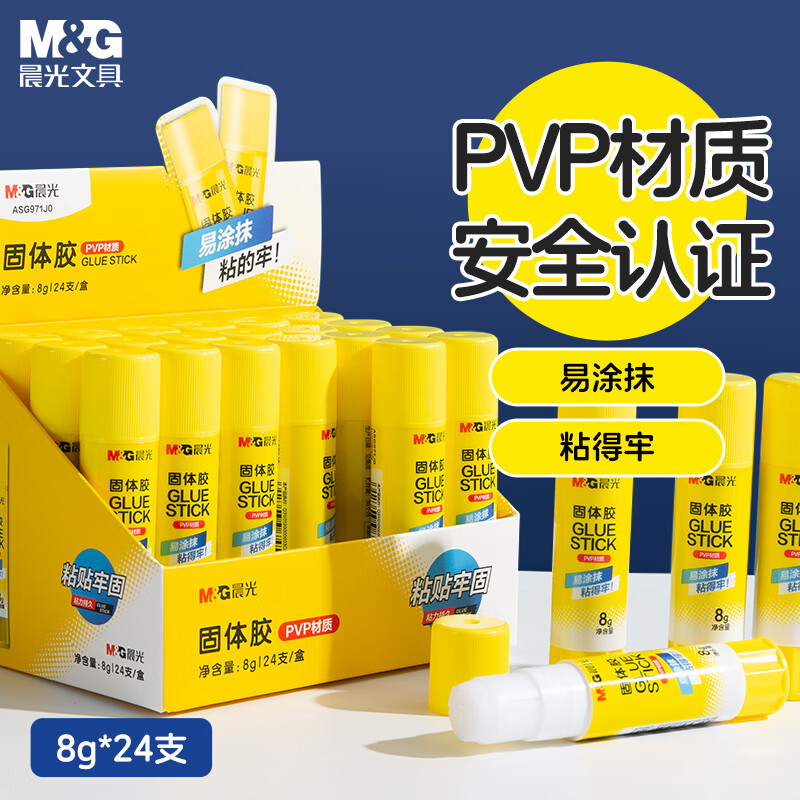 • 晨光(M&G) 8g高粘度PVP固体胶水 无甲醛快干耐用胶棒 高粘固体胶 24支装 ASG971J0