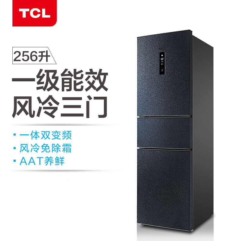 TCL BCD-256WPJD 256升 双变频风冷无霜三门电冰箱 AAT养鲜 电脑温控 一级能效 星玄青