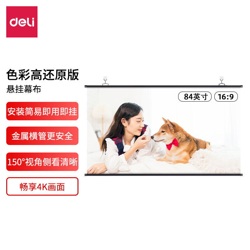 • 得力(deli) 84英寸16:9白塑挂壁悬挂式简易便携投影机投影仪幕布50446