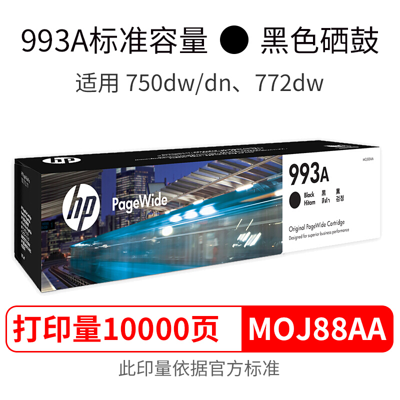惠普(HP) 993系列墨盒 适用于HP PageWide Pro 750、772 993X 黑色大容量(约10000页)
