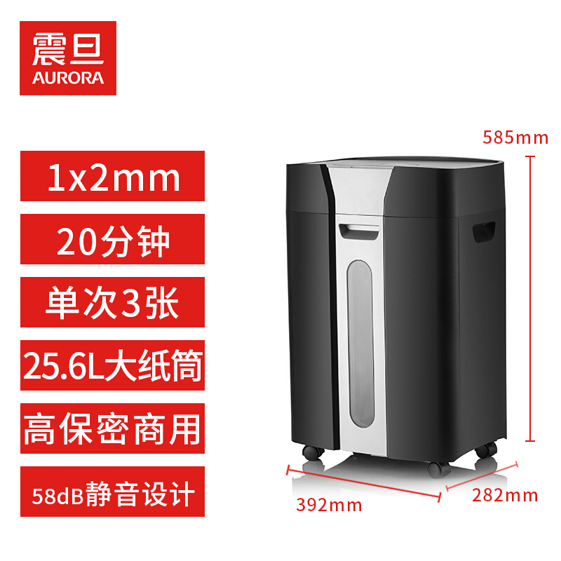 震旦AURORA 专业超细碎办公大功率大型碎纸机 7级保密 3张20分钟26.5L静音 AS0312