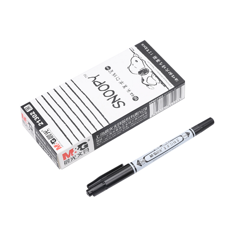 • 晨光SPM21302 黑色双头美术勾线笔 史努比系列学习重点标记笔 12支/盒