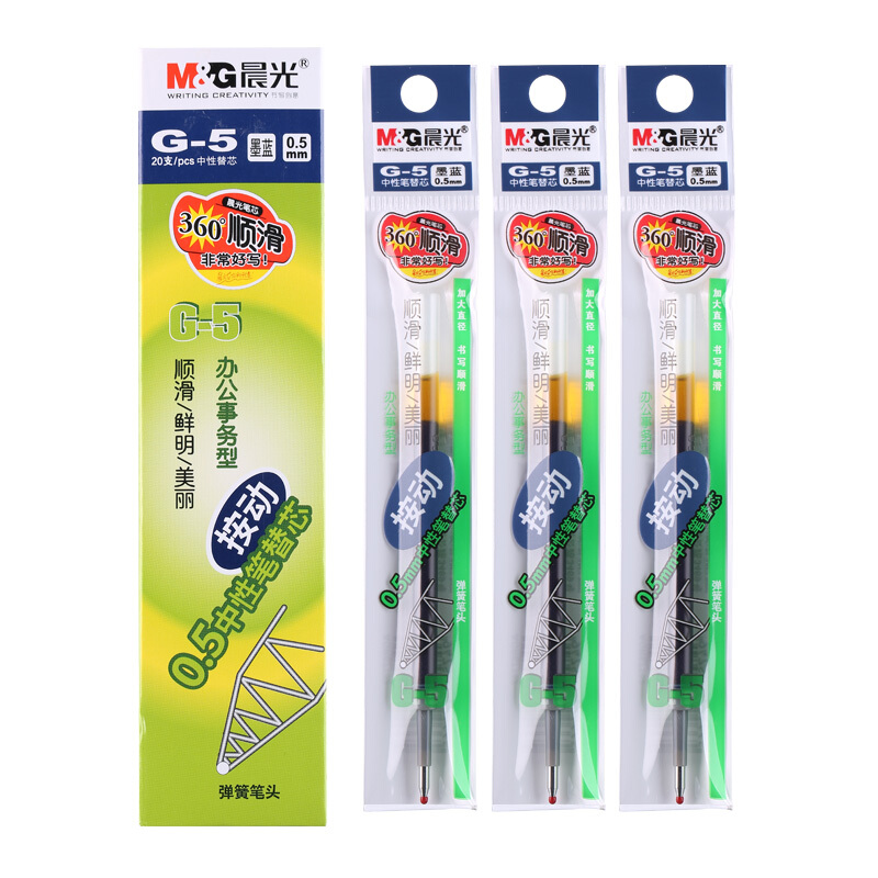 • 晨光G-5墨蓝色0.5mm按动子弹头中性笔芯 签字笔替芯 水笔芯(K35/S01适用) 20支/盒