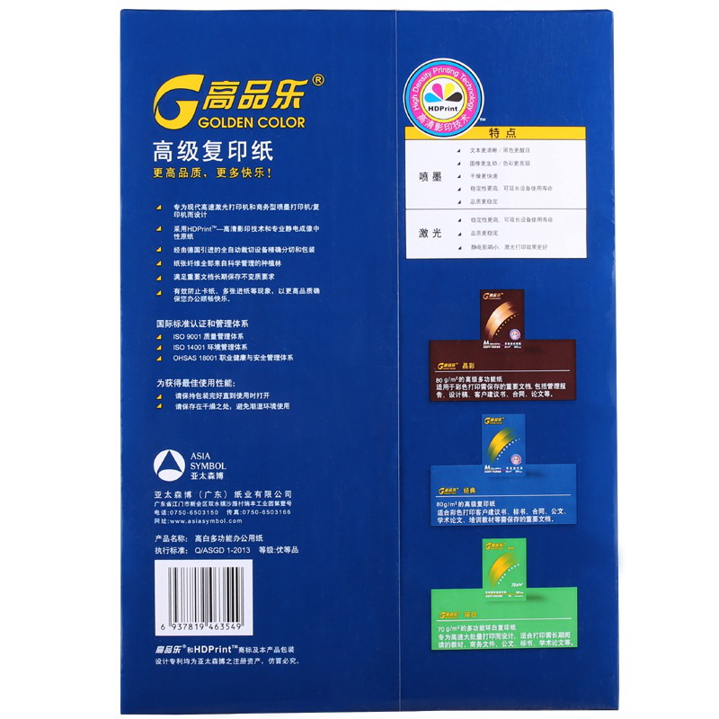 • 高品乐A4/80G纸复印纸 全木桨白纸草稿整箱 A4/80G/五包装