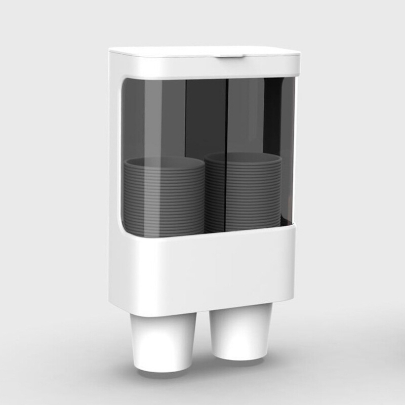 • 一次性纸杯架饮水机自动取杯器 水杯架收纳盒 防尘防污纸杯架 免打孔置物架双筒 双筒C型-白色