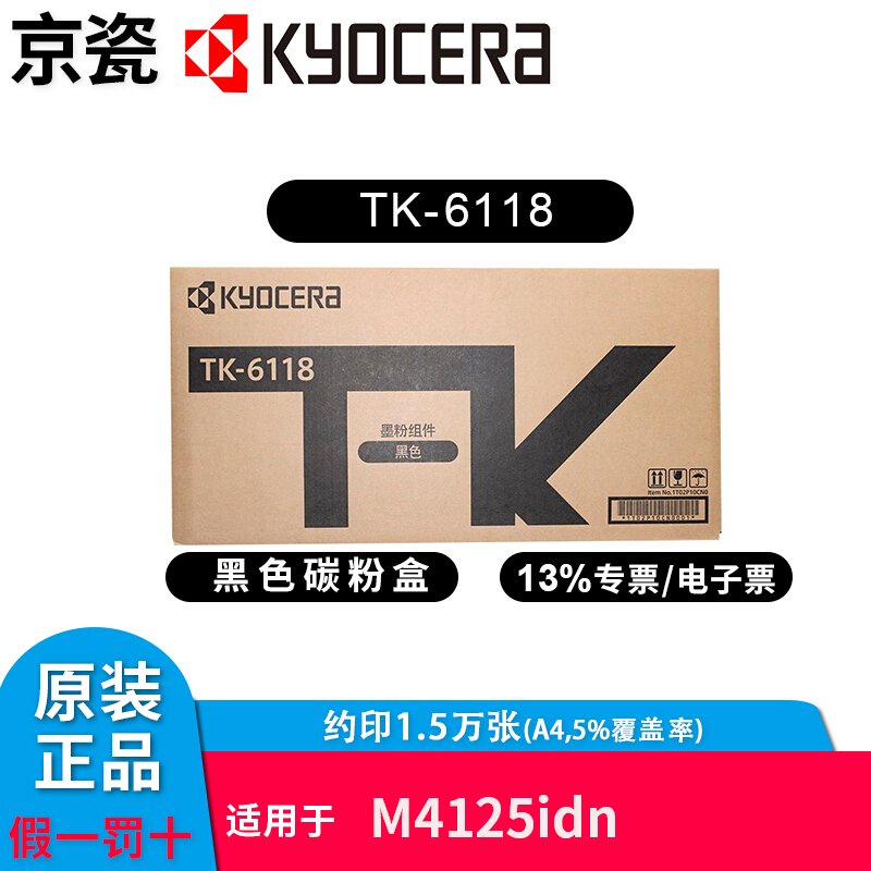 - 京瓷(KYOCERA)TK-6118原装粉盒京瓷4125碳粉 适用于京瓷ECOSYS M4125 TK-6118墨粉(A4,5%覆盖约15000页)