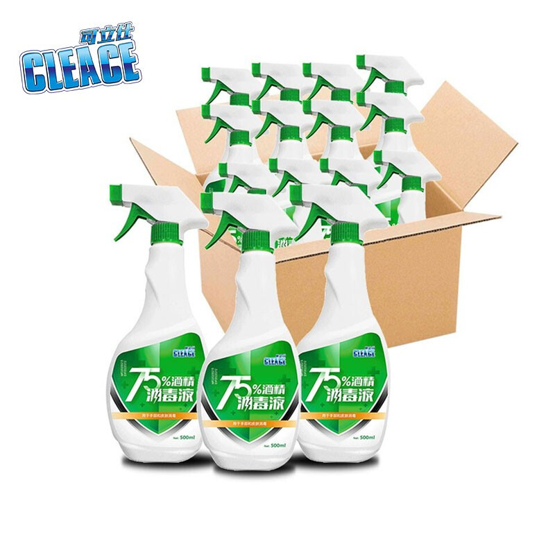 • 可立仕(cleace)75%酒精喷雾500ml*24瓶 免洗手乙醇酒精消毒液剂皮肤物品居家办公学校杀菌