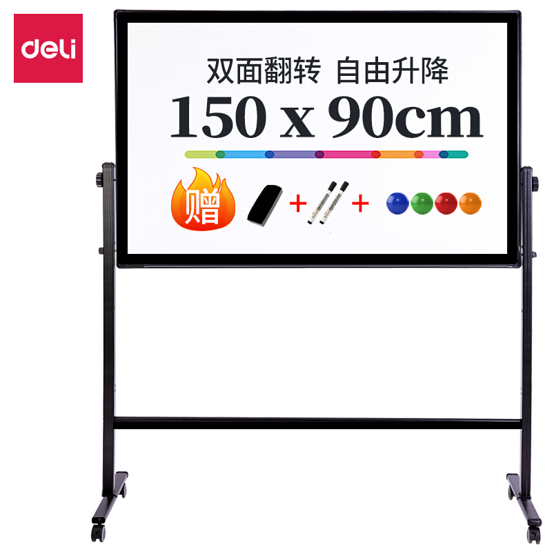 得力(deli)90*150cmH型支架白板 可升降翻转 双面书写教学会议白板/写字板50093