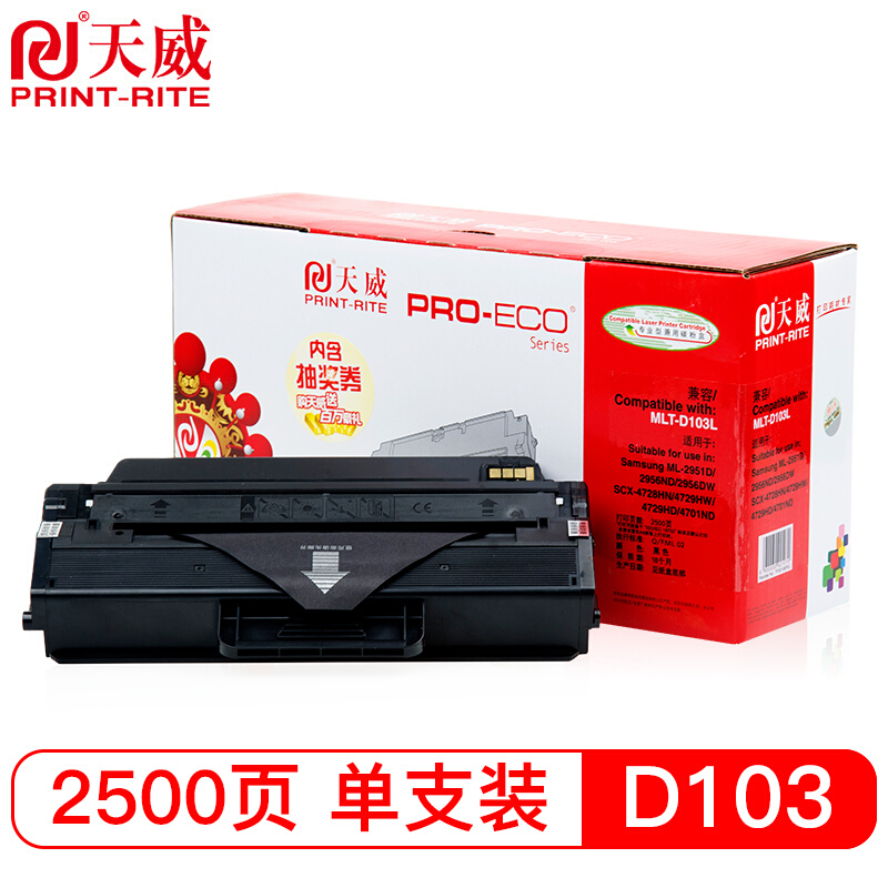 - 天威 D103L 硒鼓大容量带芯片 适用三星Samsung ML2951C 2956NC 2956DW 4729HW 4729HC 4701ND