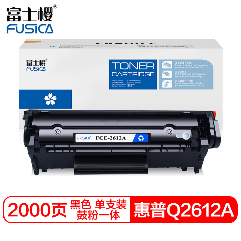 - 富士樱 Q2612A 黑色硒鼓(鼓粉一体)单支装(适用惠普 1020Plus 3050 M1005 M1319f MFP系列)打印页数:2000