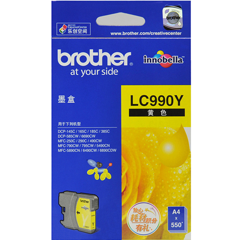 兄弟LC990Y 黄色墨盒(适用DCP-145C/165C/385C/MFC-2)