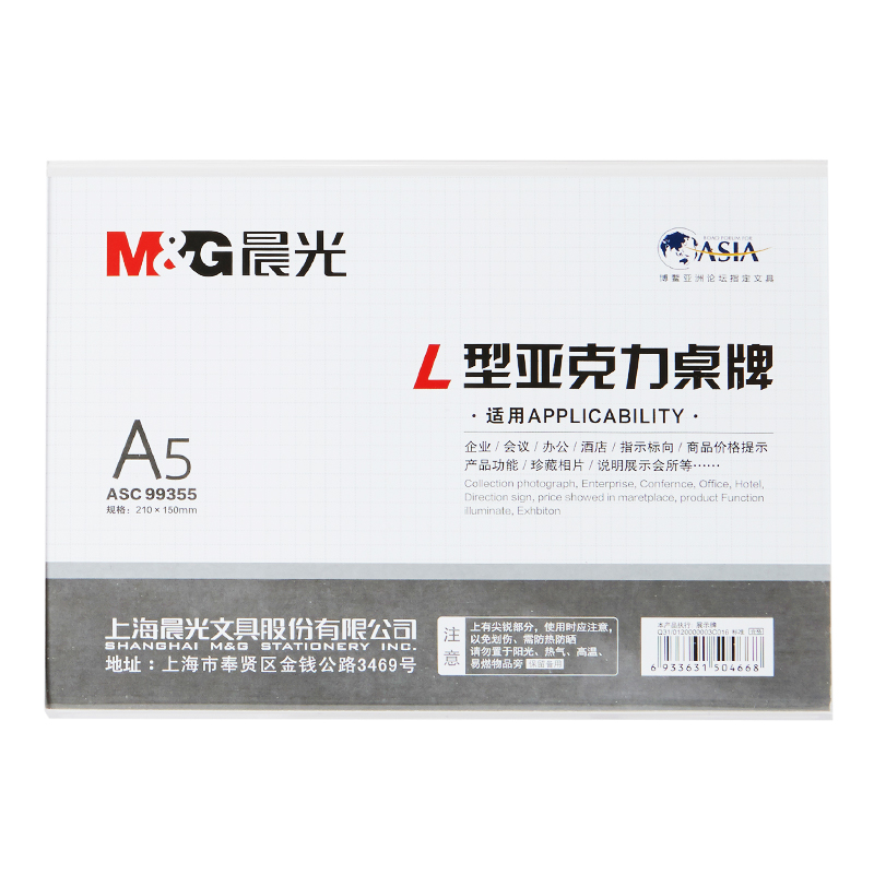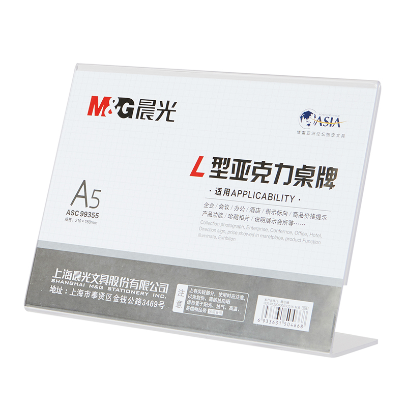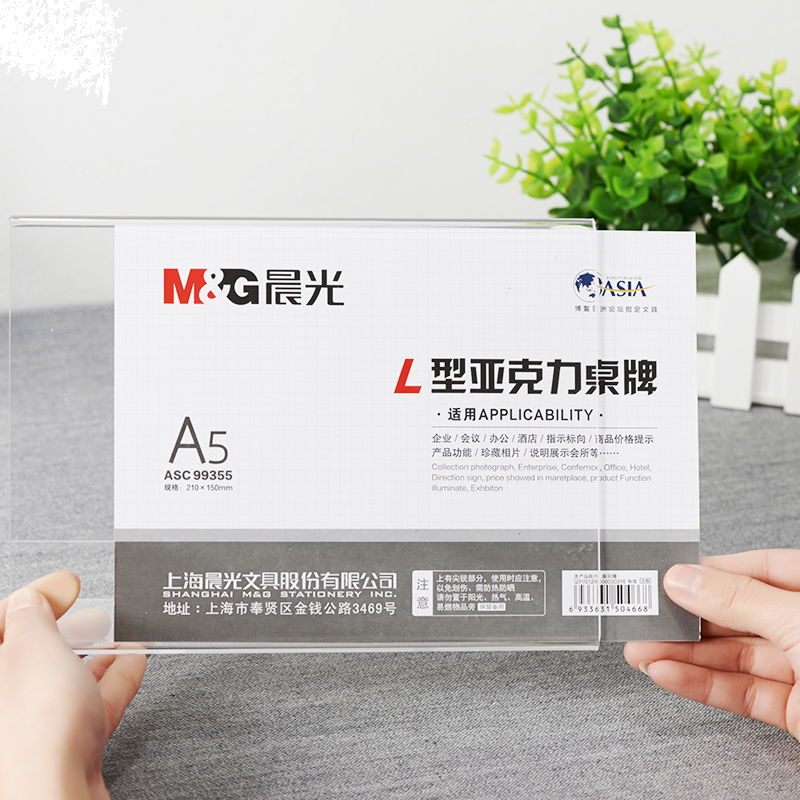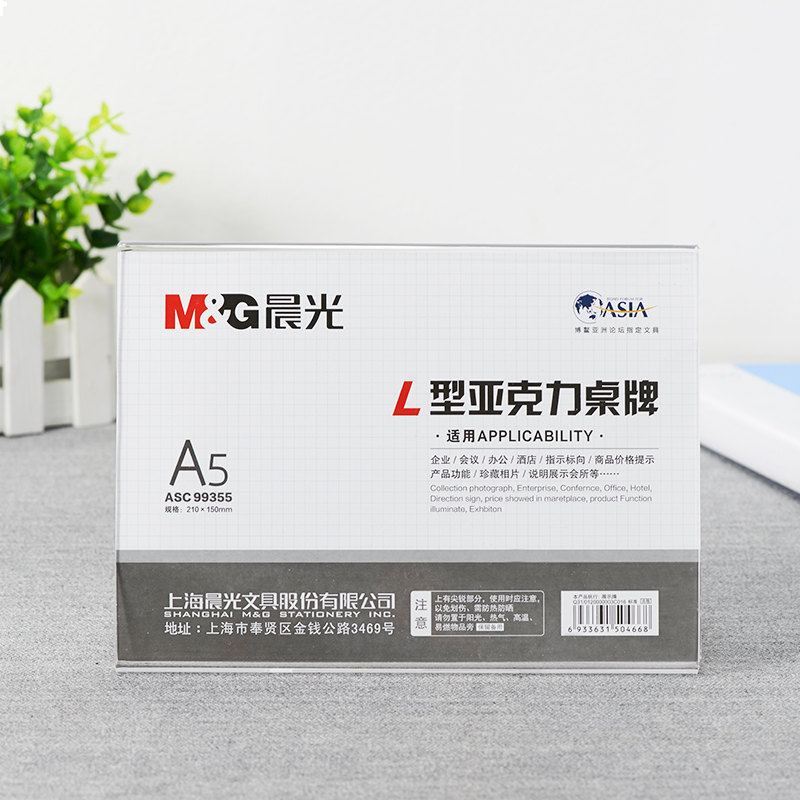 • 晨光ASC99355 桌牌 商务L型会议亚克力台牌 A5(横)