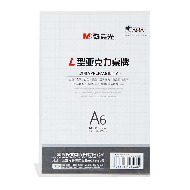 • 晨光ASC99357 商务L型会议桌牌A6台签100*150mm竖式亚克力台牌台卡