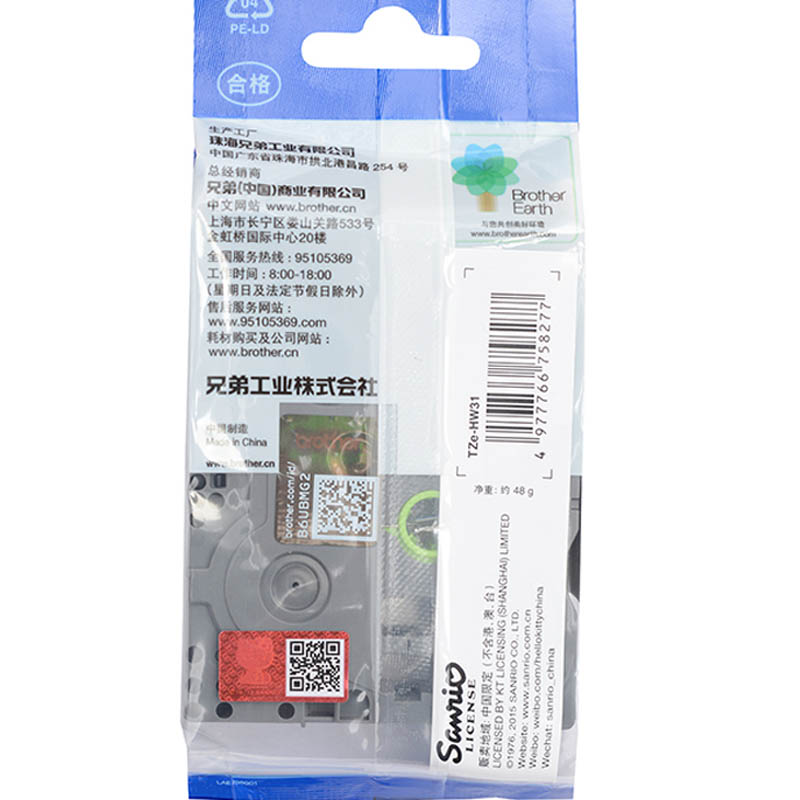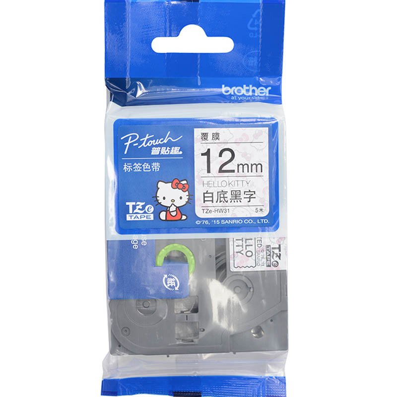 • 兄弟(brother)TZe-HW31 12mm 卡通白底黑字 Hello Kitty背景图案