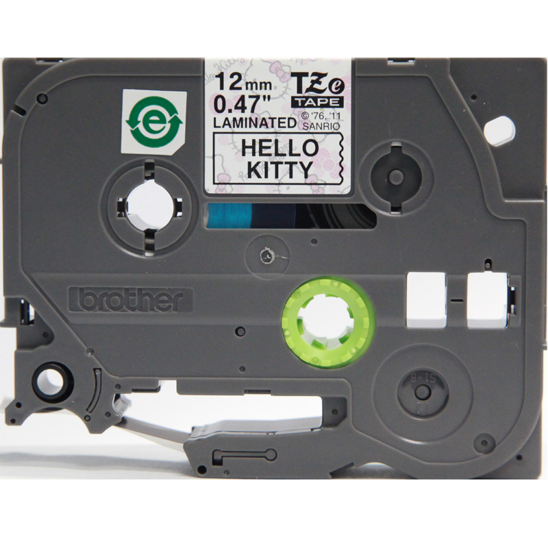 兄弟(brother)TZe-HW31 12mm 卡通白底黑字 Hello Kitty背景图案