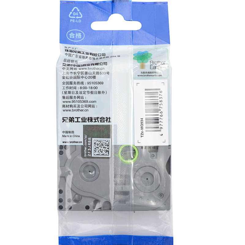 • 兄弟(brother)TZe-MQ934 12mm 亮银底金字 鲜艳色带