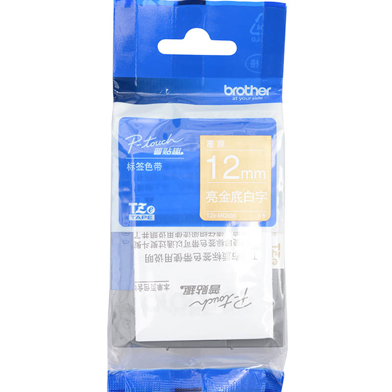 • 兄弟(brother)TZe-MQ835 12mm 亮金底白字 鲜艳色带