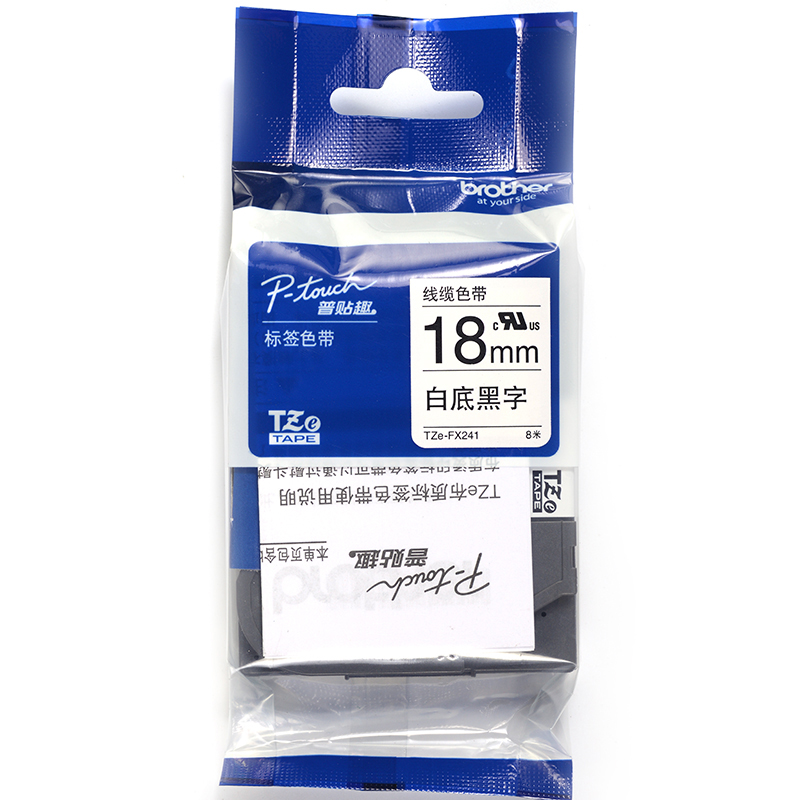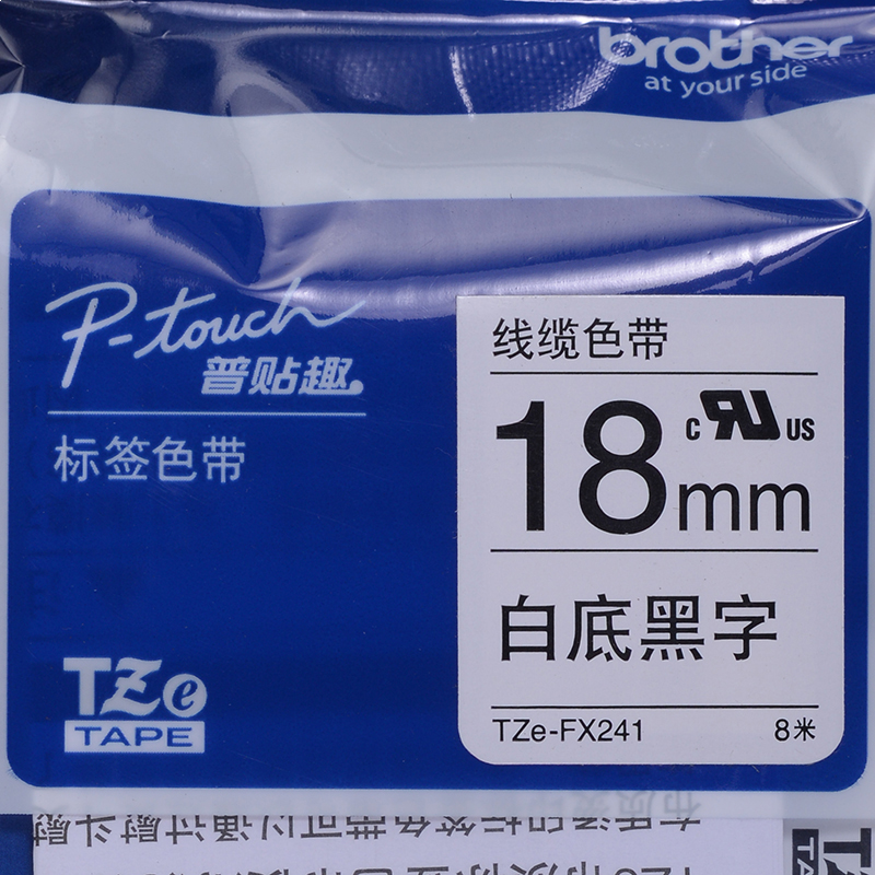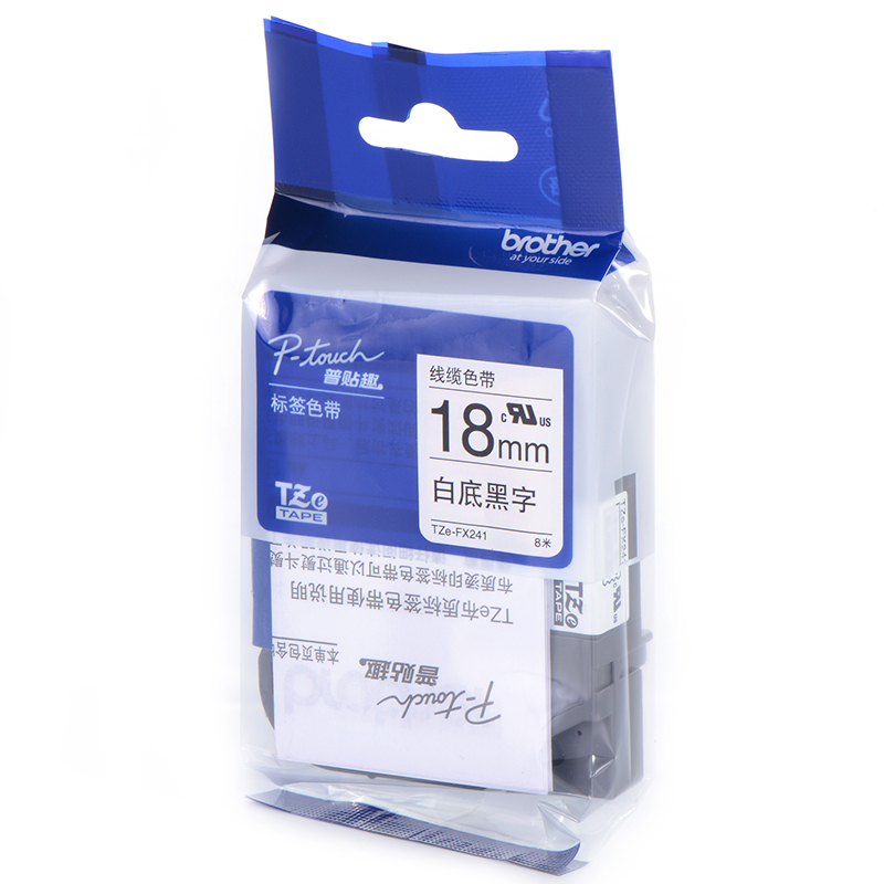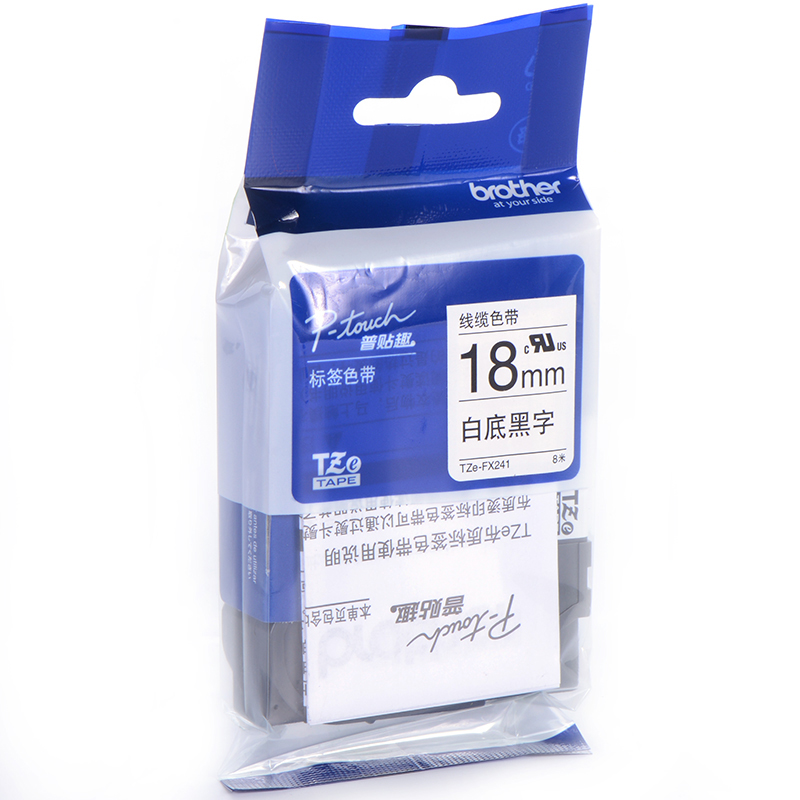 • 兄弟TZe-FX241 18mm线缆白底黑字标签色带(适用95/97/98/36/2430/2730/76/18RZ)