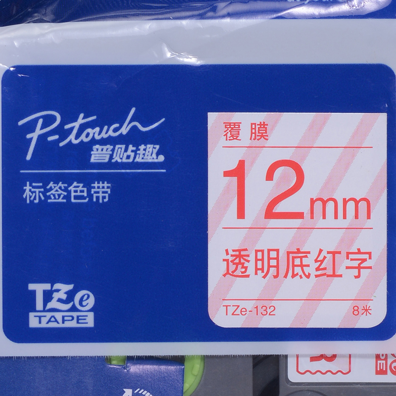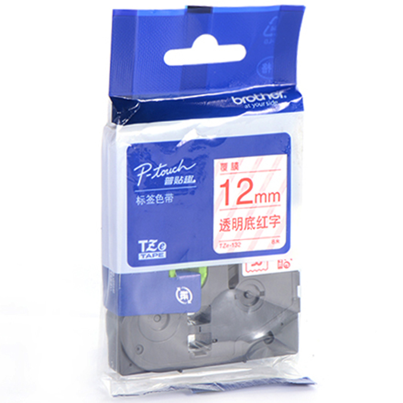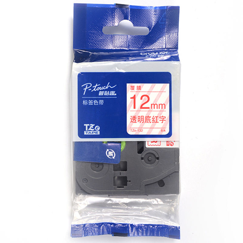 兄弟(brother) TZe-132 兄弟TZe-132 12mm透明底红字标签色带