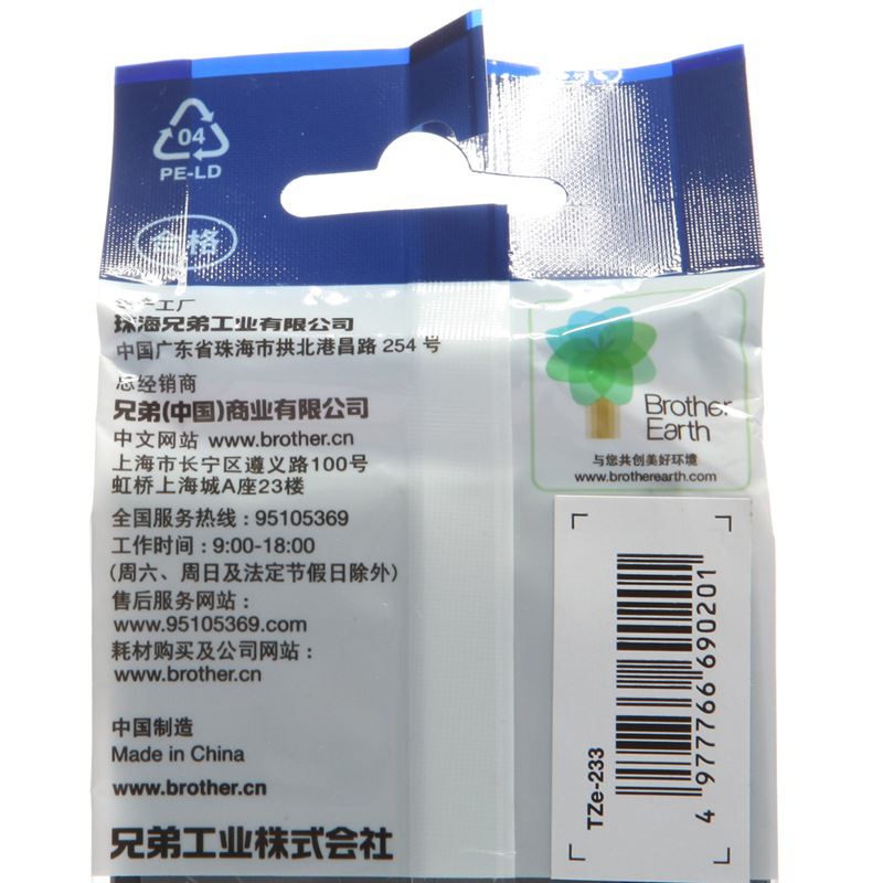 兄弟(brother) TZe-233 兄弟TZe-233 12mm白底蓝字标签色带(适用所有兄弟PT系列)