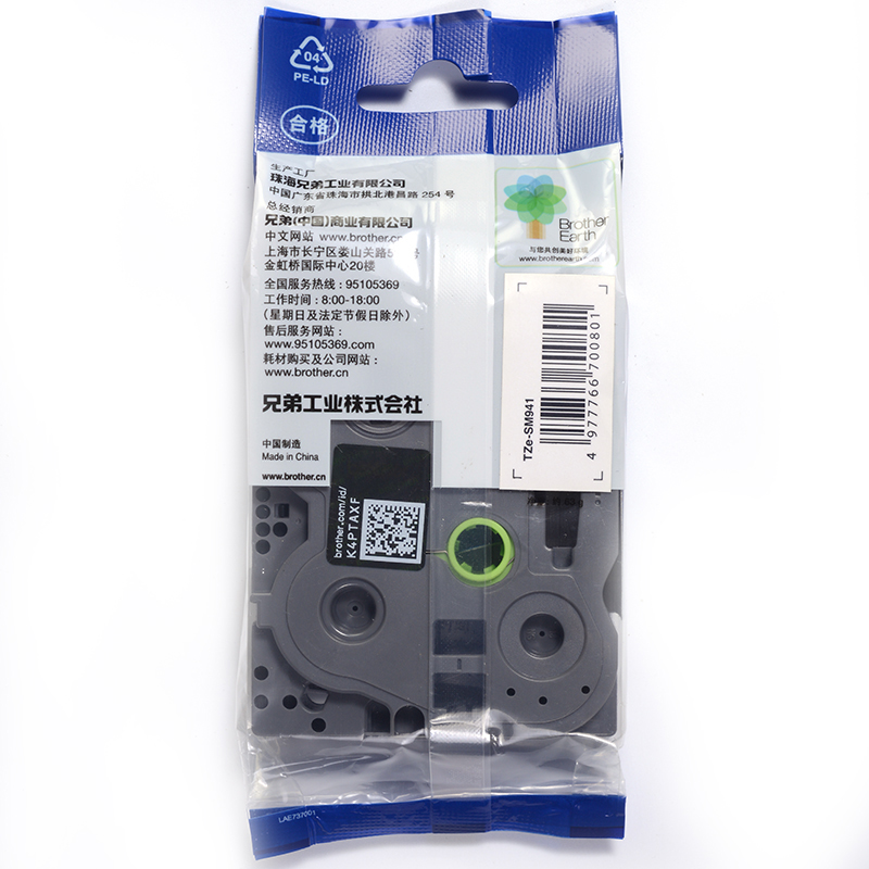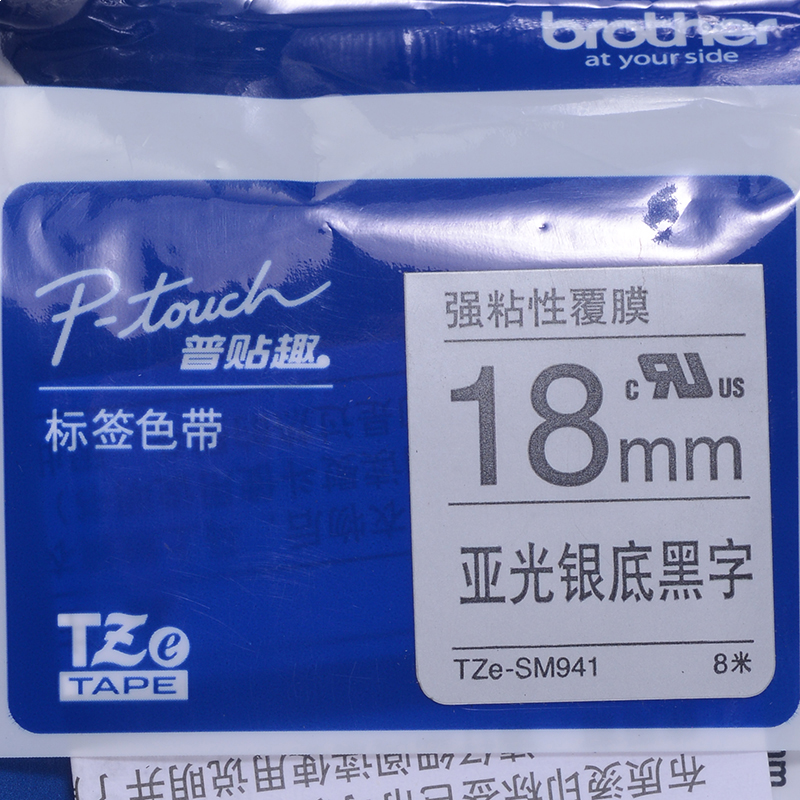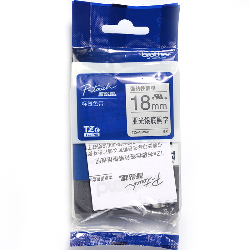 • 兄弟TZe-SM941 18mm强粘性银底黑字标签色带(适用95/97/98/36/2430/18RZ/2030)