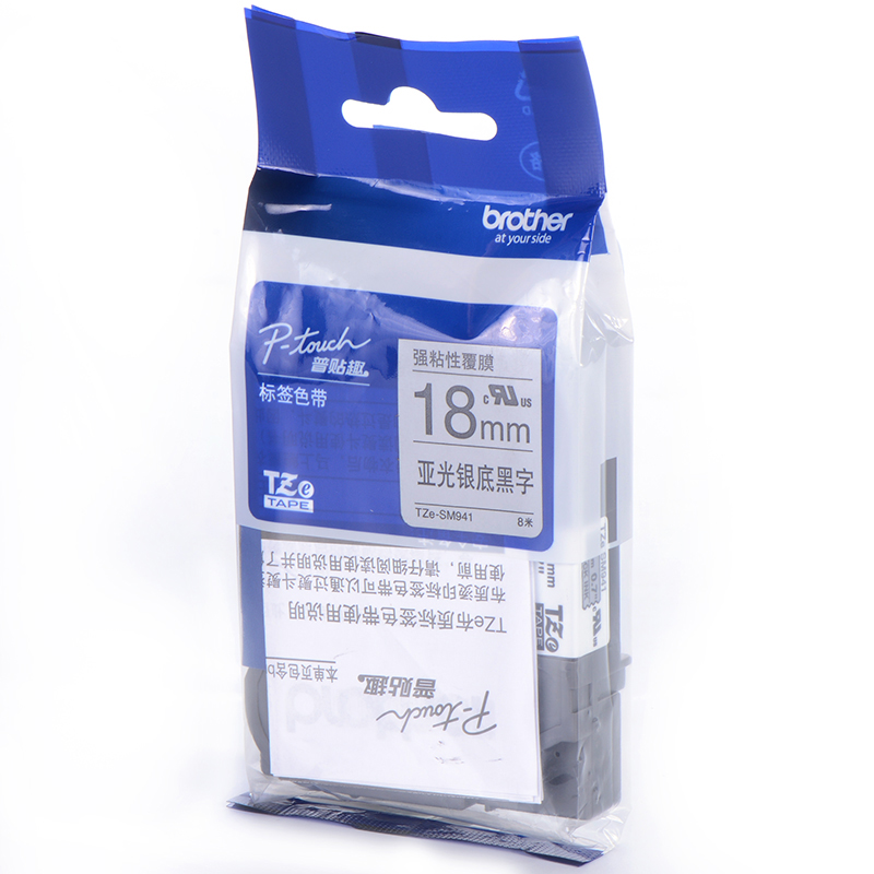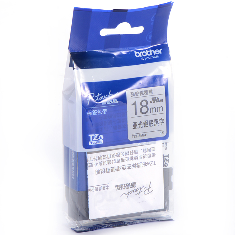 兄弟TZe-SM941 18mm强粘性银底黑字标签色带(适用95/97/98/36/2430/18RZ/2030)