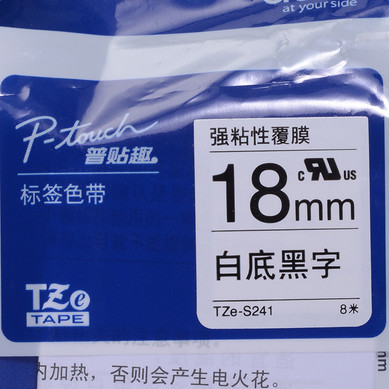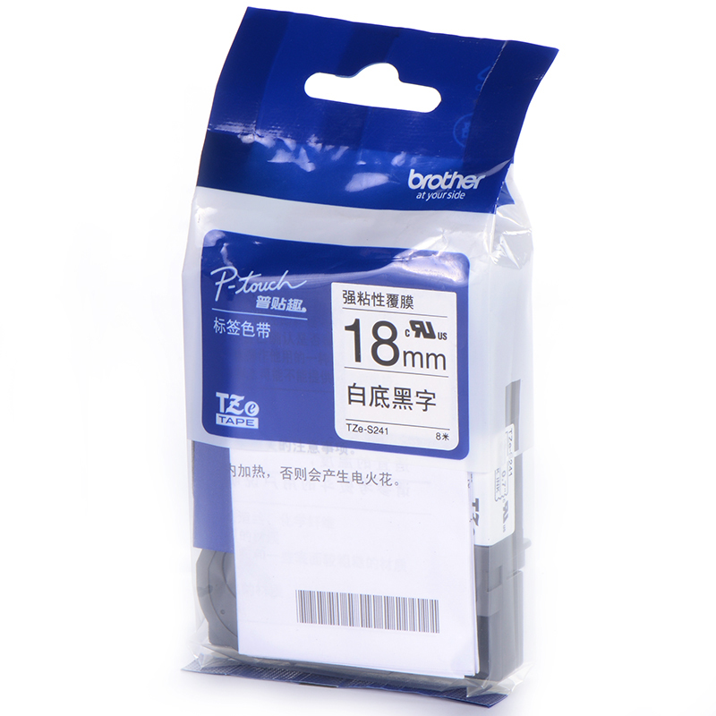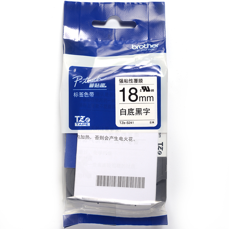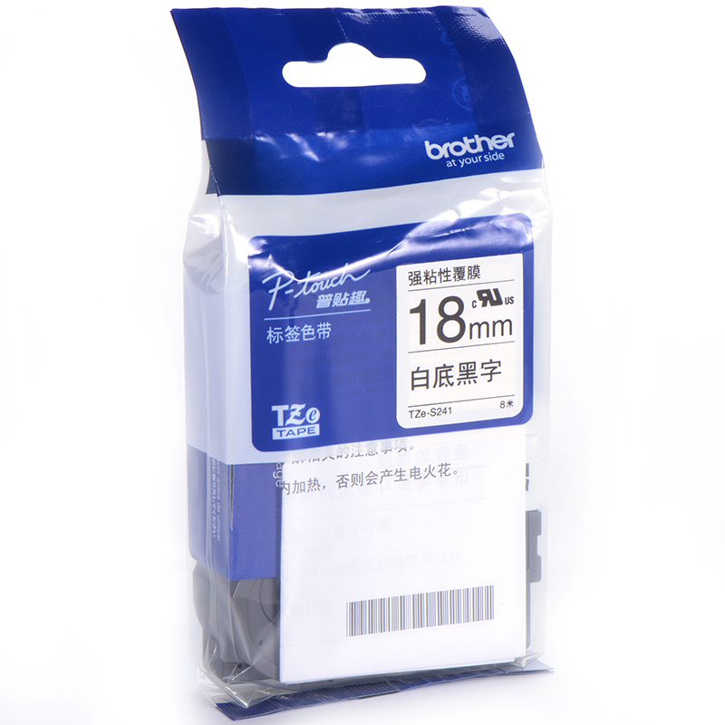 兄弟TZe-S241 18mm强粘性白底黑字标签色带(适用95/97/98/36/2430/18RZ/2030)